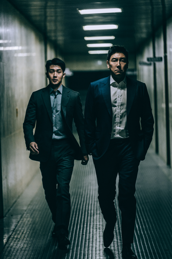 Young police detective Min-jae (played by actor Choi Woo-shik), left, is sent undercover to spy on a police detective Kang-yoon (played by Cho Jin-woong), right, who is rumored to be financially sponsored for his investigations by an unidentifiable s