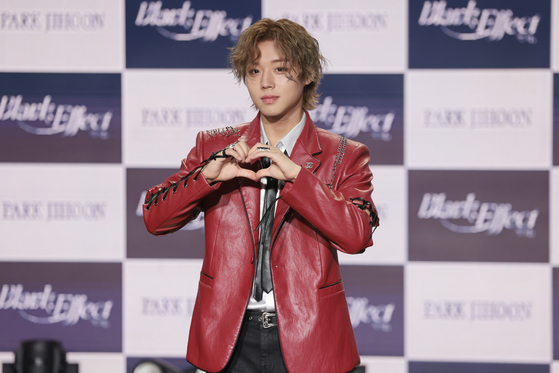 Singer and actor Park Ji-hoon poses for the camera during Wednesday's press showcase for his seventh EP "Blank or Black," held at the Ilchi Art Hall in southern Seoul's Gangnam District. Lead track "Blank Effect" is a hip-hop track mixed with strong synthesizer sounds. Park, who debuted in 2006 as a child actor in the MBC drama "Jumong," joined project boy band Wanna One in 2017 after finishing in second place on cable network Mnet’s audition program “Produce 101.”
