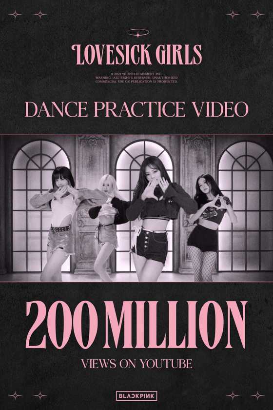Blackpink’s dance practice video for its song “Lovesick Girls” surpassed 200 million views on YouTube on Tuesday.