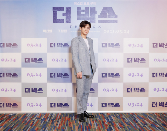 Boy band Exo’s Chanyeol poses for a photo at an online press conference for his new movie “The Box” at Megabox's Coex branch in Gangnam District, southern Seoul on Thursday. The movie is about talented singer Ji-hun, played by Chanyeol, who can sing only when he is covered with a box. It hits local theaters on March 24.