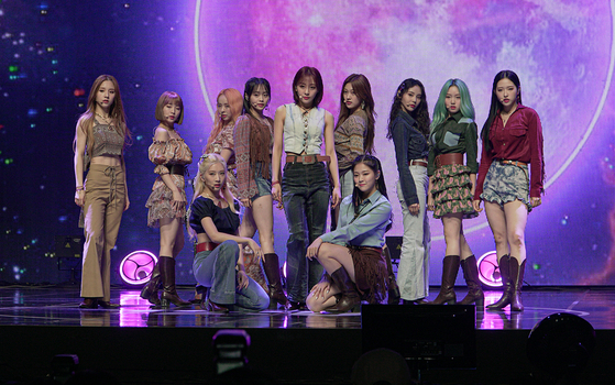 Girl group Loona showcased its third EP "[12:00]" on Monday afternoon at the Blue Square iMarket Hall in Hannam-dong, central Seoul, revealing its new music for the first time.