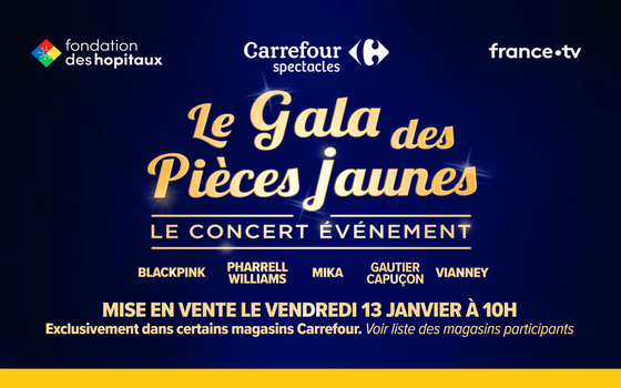 Le Gala des Pièces Jaunes will be recorded on Jan. 25 in Paris and tickets to the concert will be available through select Carrefour stores. The concert will also air on the France 2 channel on Jan. 28.