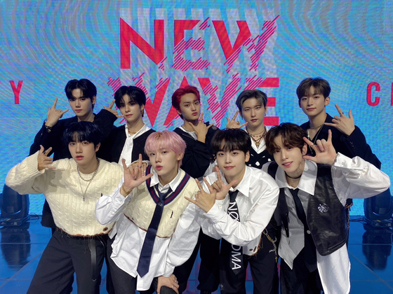 The boy band dropped EP “New Wave” on Tuesday and held a comeback showcase at the Yes24 Live Hall in Gwangjin District, eastern Seoul. It also livestreamed the showcase via the fan community platform Universe.