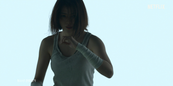 But for “My Name,” Han leaves that pretty image behind, bulking up 10 kilograms during the training she received in action school to pull off convincing scenes, almost all of which see her character Ji-woo soaked in blood, sweat and tears.