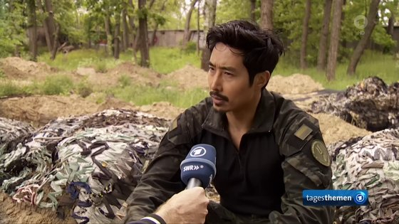German news program Tagesschau aired a five-minute, 44-second clip of Rhee under the title "A foreign soldier in Ukraine."