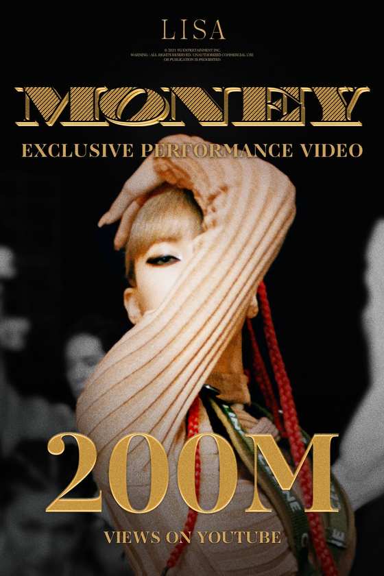 Lisa of girl group Blackpink has another video that has reached over 200 million views on YouTube. According to her agency YG Entertainment on Monday, the performance video of her song “Money” passed the 200-million mark 38 days after the song's release.