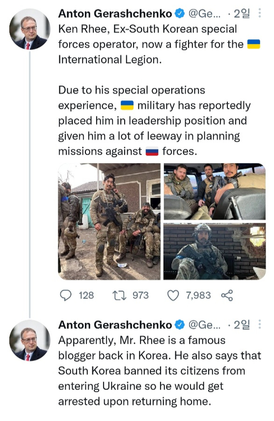 Rhee Ken, a Korean YouTuber and a former Korean Navy special warfare officer who went to Ukraine last week to fight Russia, was reported to be staying near the Polish border, according to a local news outlet on Tuesday, though Rhee himself says otherwise.