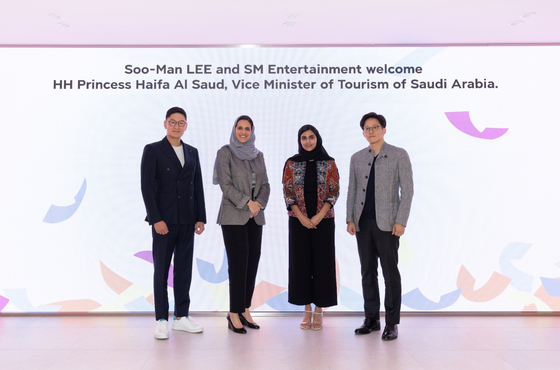 Tak Young-jun and Lee Sung-soo, co-CEOs of SM Entertainment, met with Princess Haifa bint Muhammad Al Saud on Wednesday night at SM’s office building in Seongdong District, eastern Seoul, to discuss plans to collaborate on tourism events in Saudia Arabia.