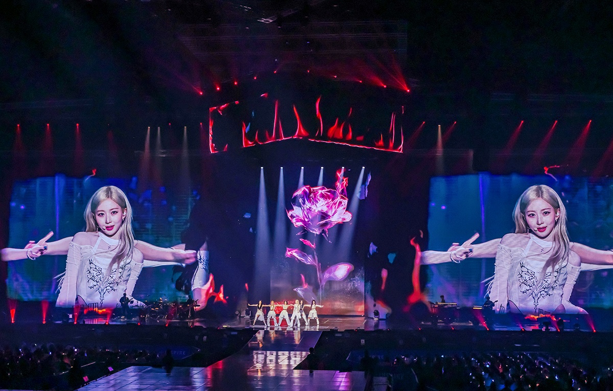 After an intense buildup — with “Papillon,” “Slingshot” and “Reality Hurts,” which were accompanied by generous bursts of pyrotechnics — the first major highlight of the night started with “DICE” (2022), followed by “Tank” (2022) and “Love Me Like This” (2023), before culminating in, of course, “Blue Valentine.” A floral scent that had been faintly present throughout the venue intensified during “Love Me Like This” as part of the multisensory production design.