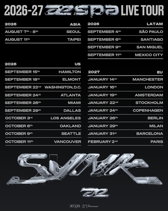 The tour will come after the release of aespa's second full-length album "Lemonade," set for release on May 29.