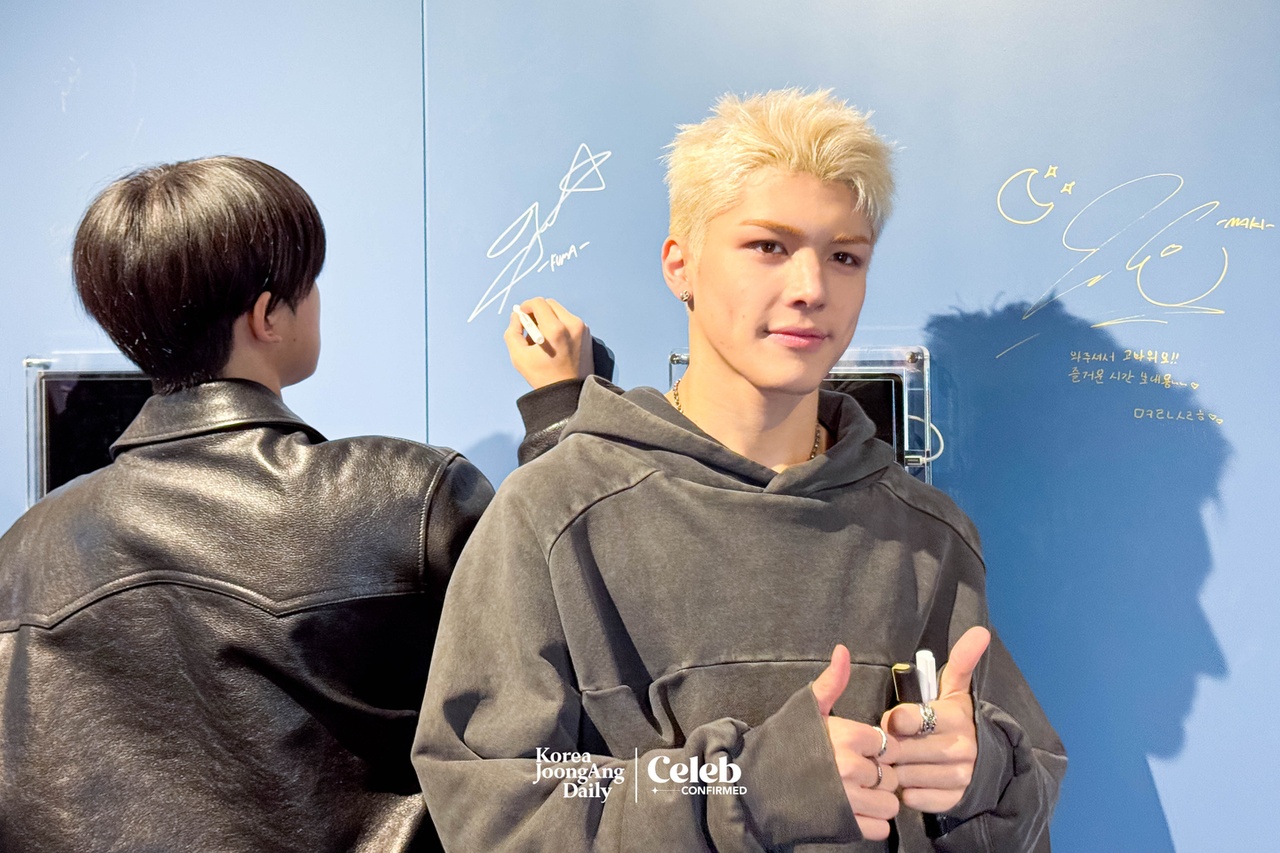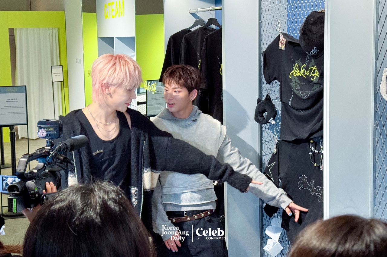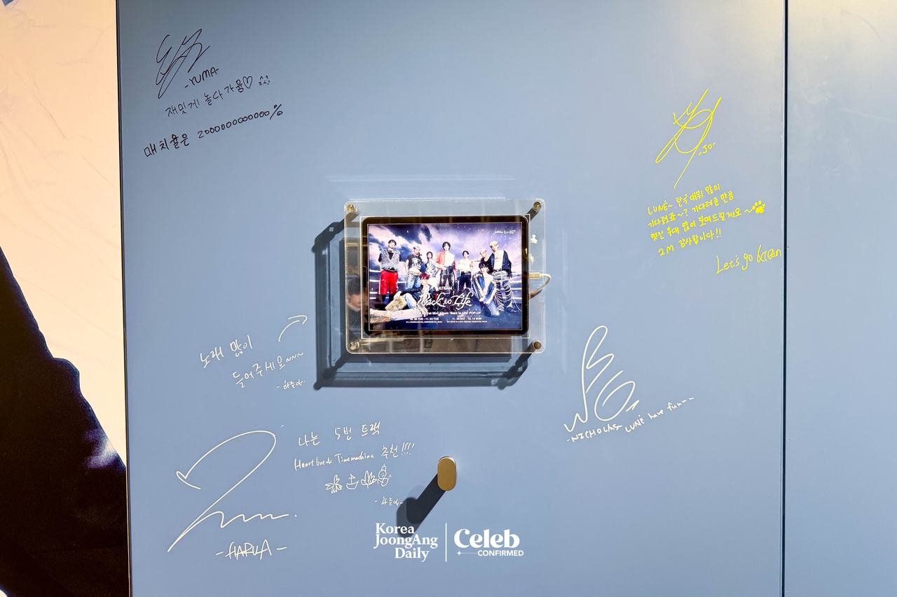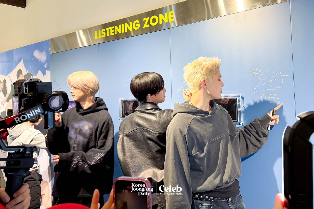 On Thursday, members K, Nicholas, Yuma, Jo, Fuma, Harua and Maki held a press event where they posed for photos and toured the store, leaving signatures and messages throughout the space.
