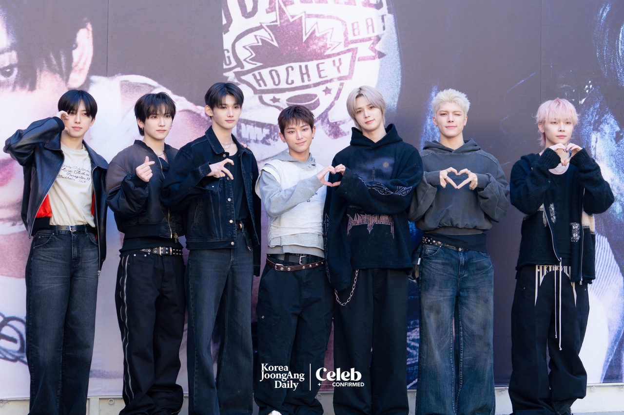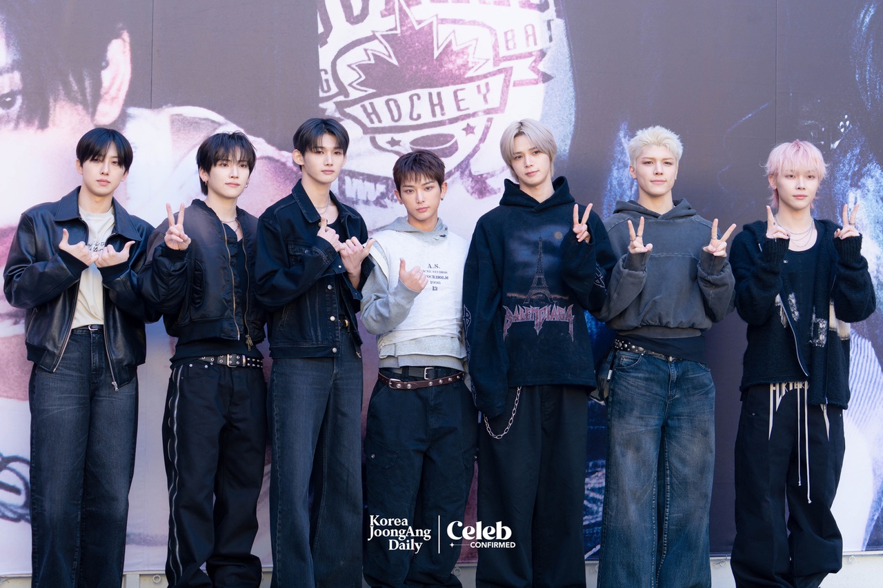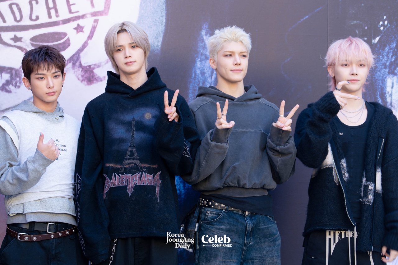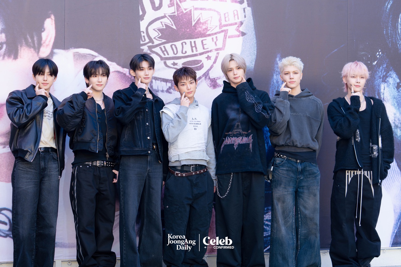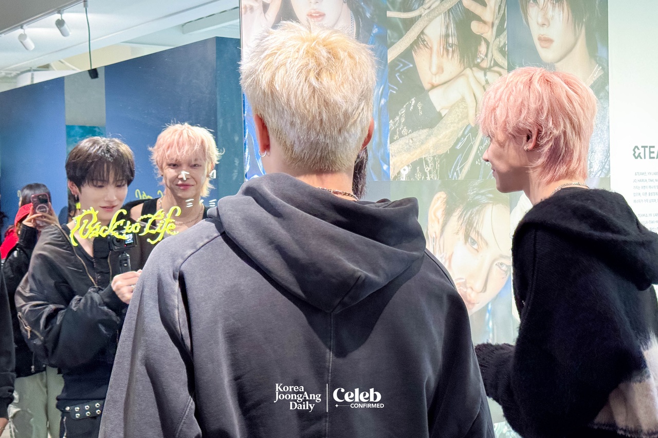 Boy band &TEAM during a press event at the “Back to Life” pop-up store in Seongsu-dong, eastern Seoul, on Oct. 30 [DANIELA GONZALEZ PEREZ]