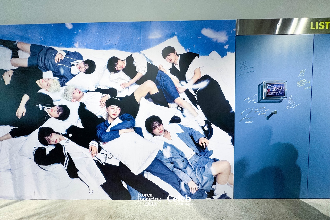 The pop-up offers photo zones, displays of exclusive merchandise and an area for fans to listen to the new album. Items on sale include key rings, straps, rings, photo card sets, scrunchies, light stick covers, photo card binders, T-shirts, acrylic magnets and different versions of the album.