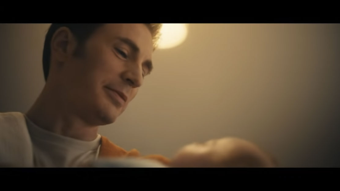 In the newly released trailer, however, Steve appears once again in his younger form, riding a motorcycle down a road before entering a rural farmhouse. Scenes follow of Captain America’s suit being placed into a box and Steve holding a baby in his arms as he looks down tenderly. No other Avengers appear in the trailer aside from Rogers.