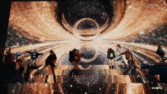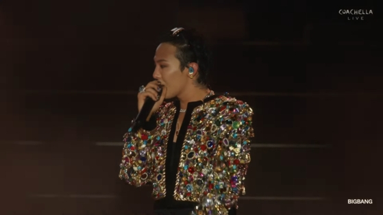 "This year marks Big Bang's 20th anniversary," leader G-Dragon told the audience during the trio's performance at the Coachella Valley Music and Arts Festival in Indio, California, on Sunday.