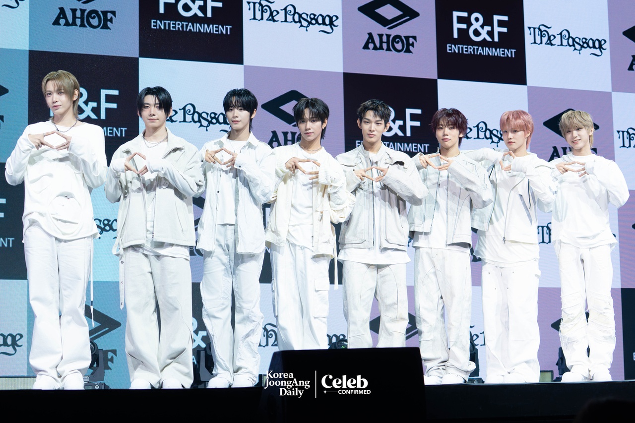 Boy band AHOF held a comeback showcase on Tuesday at Yes24 Live Hall in eastern Seoul to celebrate the release of its second EP “The Passage.”