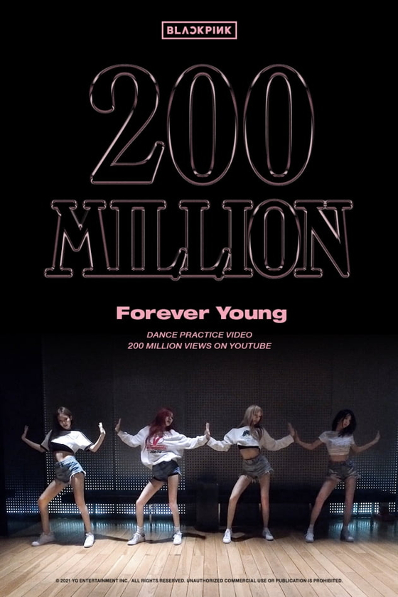 Blackpink's choreography video of its single "Forever Young" has been viewed more than 200 million times on YouTube, according to YG Entertainment on Monday.
