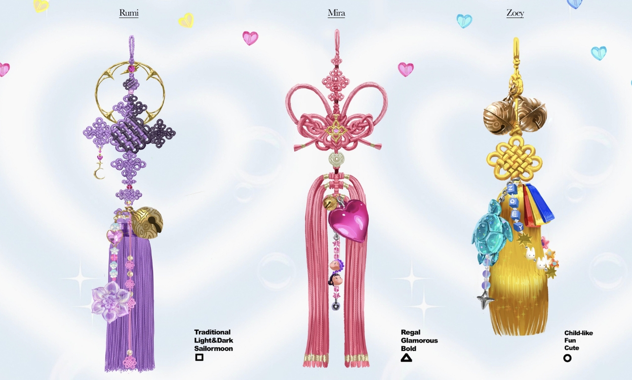 Traditionally, the accessory’s connecting cord would be tucked under the jeogori, the top jacket of hanbok, and hang from the skirt portion. HUNTR/X reinterprets this accessory, wearing it stylishly on their pants — a clever blend of tradition and modernity.