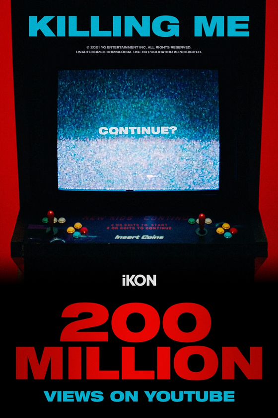 The music video for iKON’s “Killing Me” (2018) achieved 200 million views on YouTube, YG Entertainment said Wednesday.
