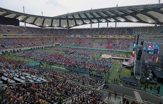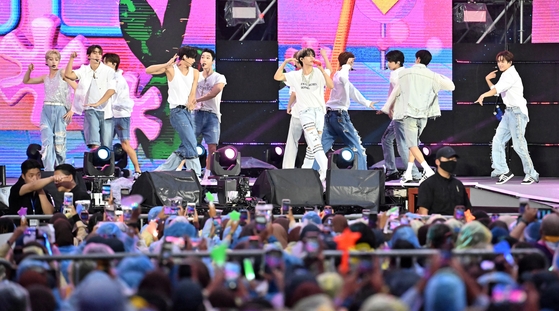 The "K-pop Super Live" concert began at 7 p.m. after the closing ceremony for the 25th World Scout Jamboree in western Seoul, the 12-day global scouts' event that had come under fire for its disappointing execution and hasty attempt to make up for the whole fiasco with the reputation of K-pop artists.