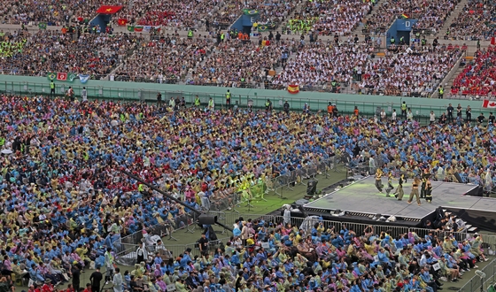 A World Scout Jamboree scarred by poor management and even more unhelpful weather was salvaged by a surprisingly successful finale concert held at the Seoul World Cup Stadium to close the event on Friday night.
