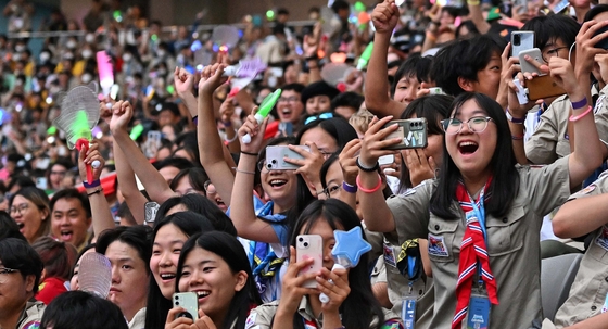 "The scouts' passion seems just as great as the passion of the artists," Hyein, host of the concert, said to an excited crowd as they filled the stadium with a thundering roar each time a new team stepped onto the stage.