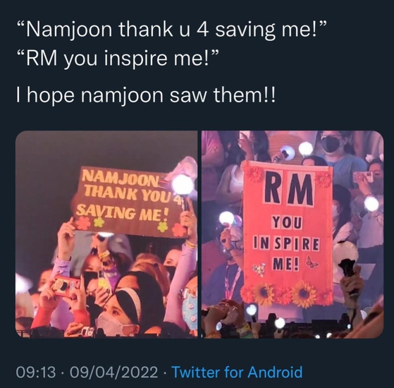 Apart from talking about songs or music videos, fans actively discuss online how BTS has positively influenced their mental health. Signs like “Because of you I was able to live this far” and “Thank you 4 saving me” were spotted during the Las Vegas concerts and shared among ARMY.