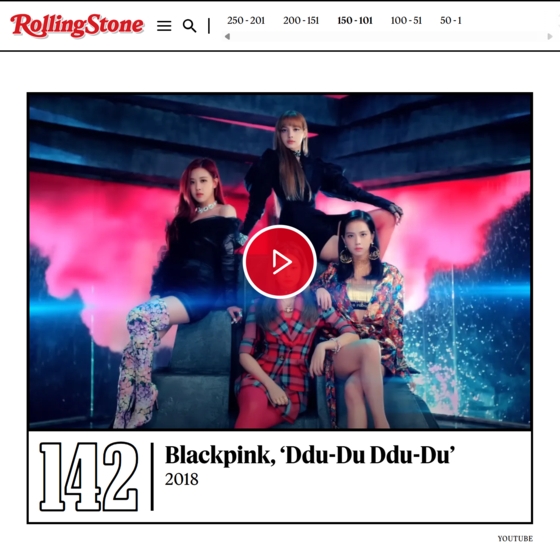 Following BTS was Blackpink with its 2018 hit dance track "Ddu-Du Ddu-Du" on No. 142.