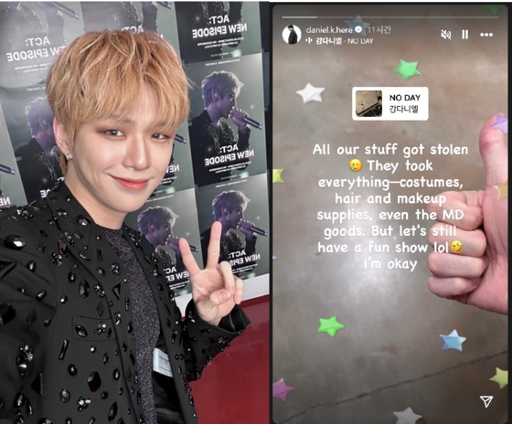 "All our stuff got stolen," Kang said in an Instagram Story on Tuesday. "They took everything — costumes, hair and makeup supplies, even the MD goods."