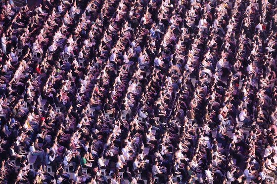 Audience members fill the outdoor theater at the Busan Cinema Center in Haeundae District, Busan, to watch the opening ceremony of the Busan International Film Festival on Sept. 17. [YONHAP]