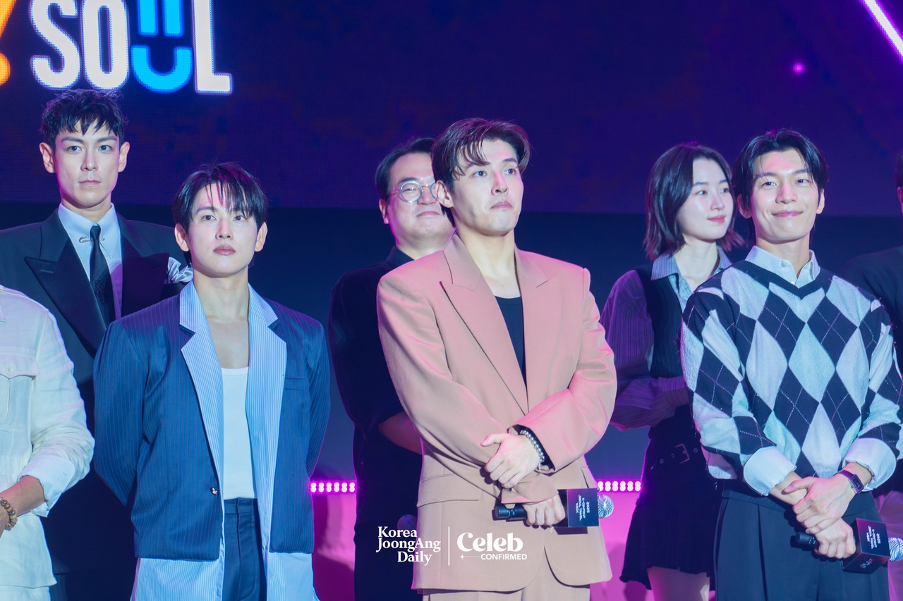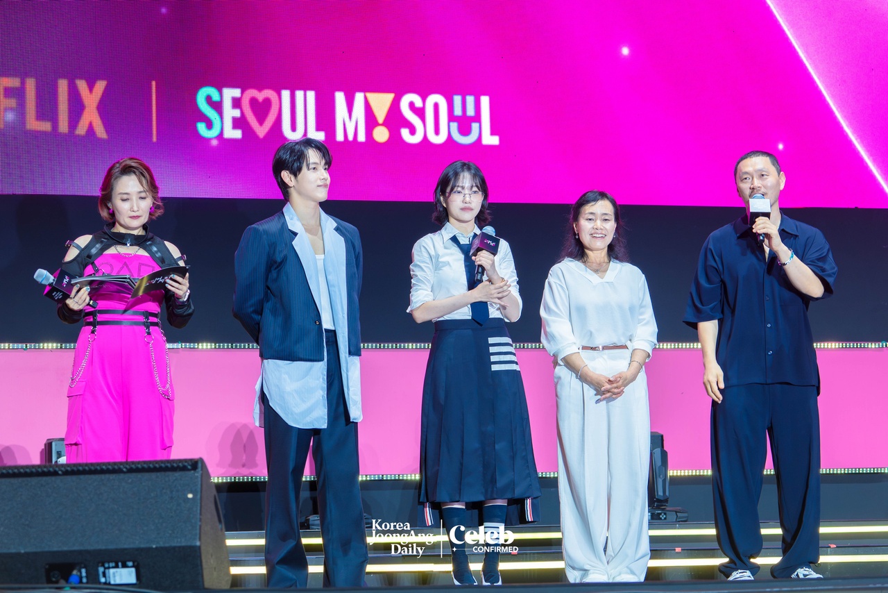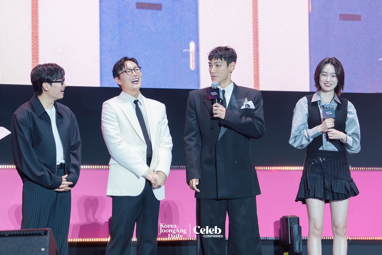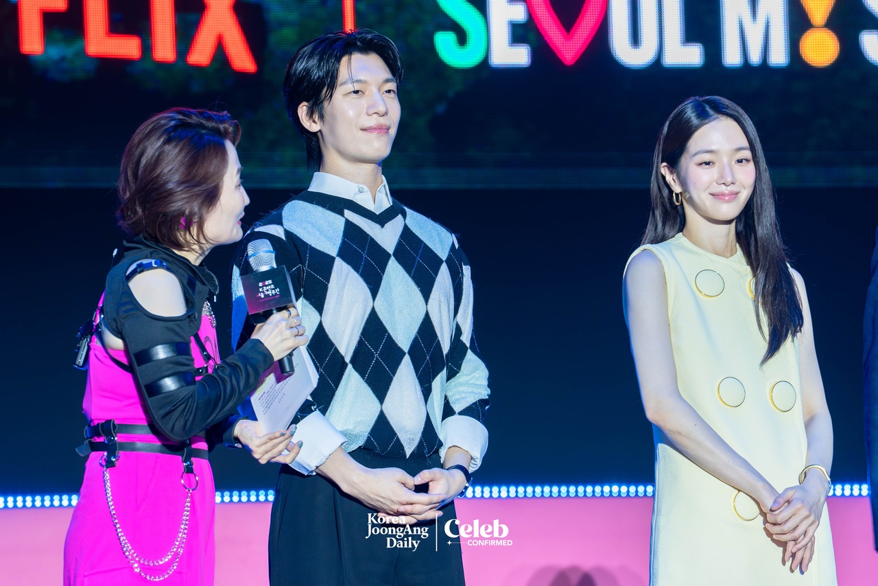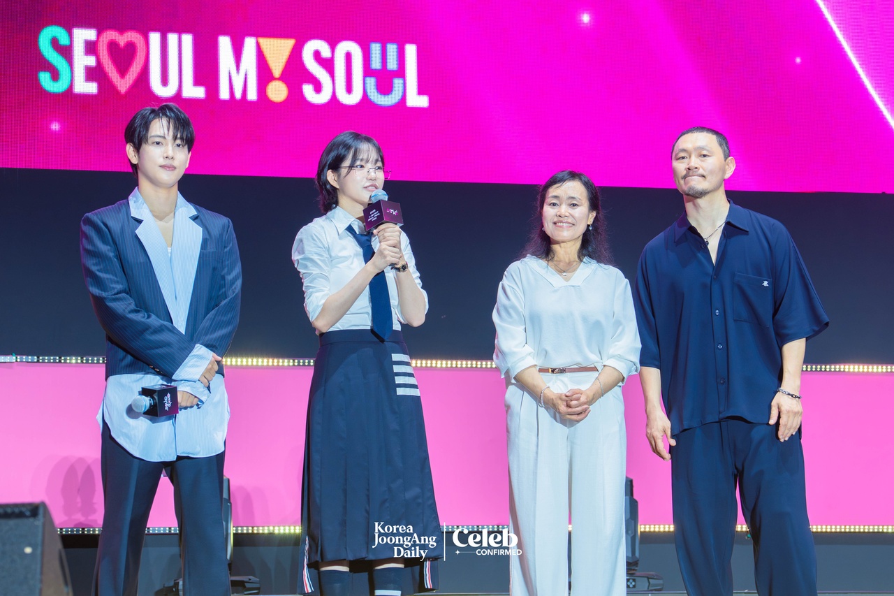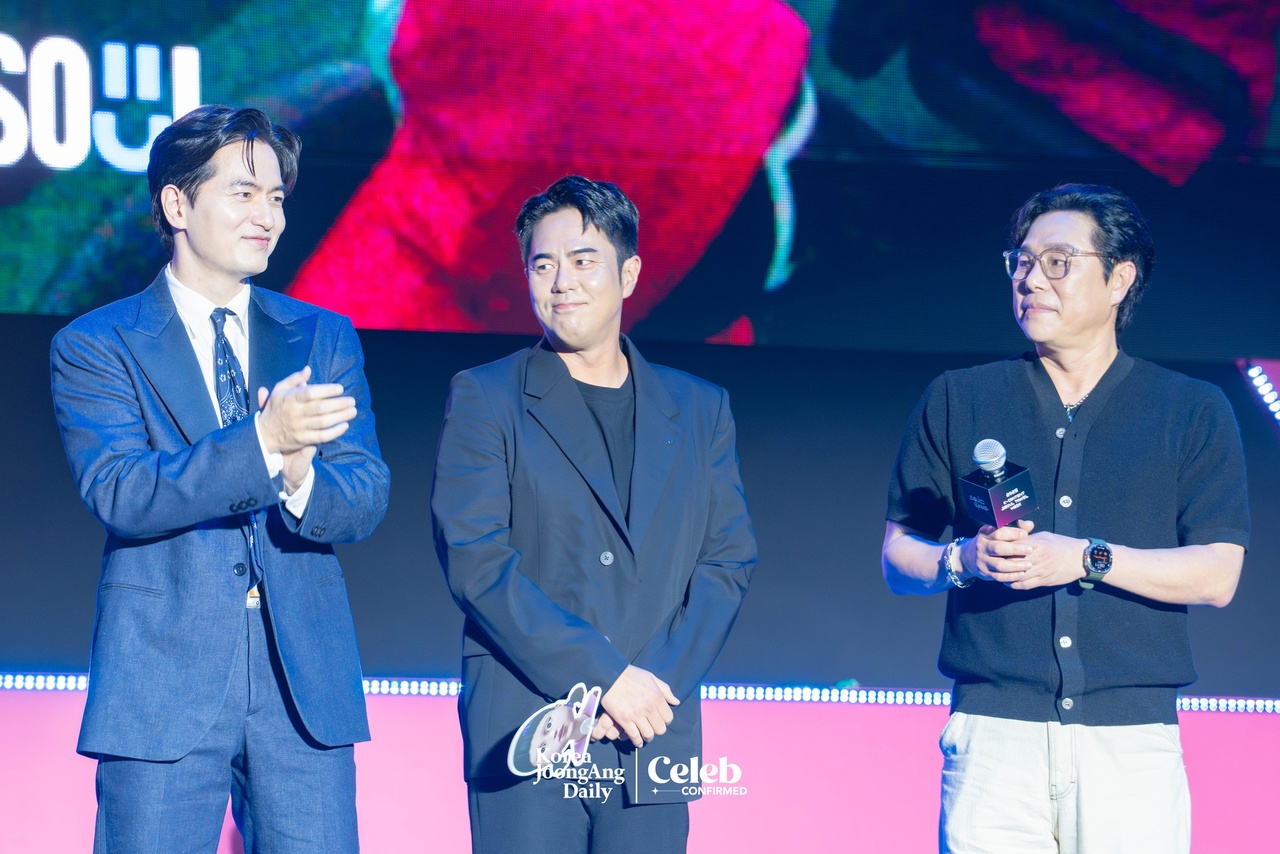 The cast of the third season of “Squid Game” during a fan event for the release of the third season of “Squid Game” (2021-) at Seoul Plaza in central Seoul on June 28. [DANIELA GONZALEZ PEREZ]