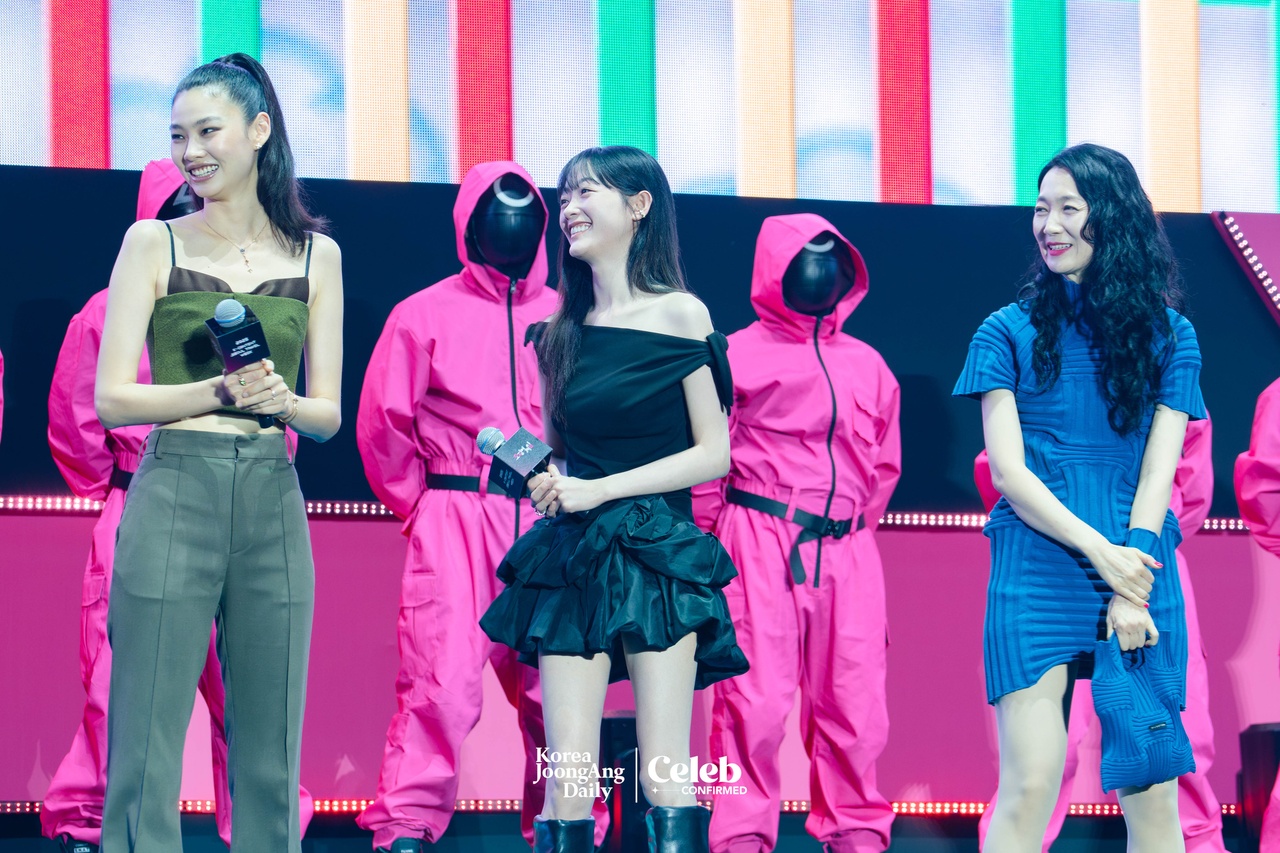 The cast also made an appearance during the fan event, including actors Lee Jung-jae, Lee Byung-hun, Yim Si-wan, Kang Ha-neul and Wi Ha-jun, along with director Hwang Dong-hyuk and other actors from all three seasons of the series. They answered questions, interacted with fans and tossed signed balls into the crowd.