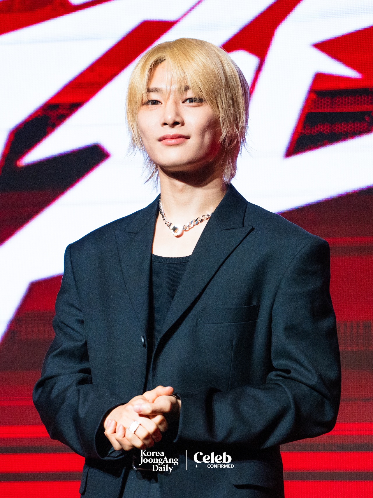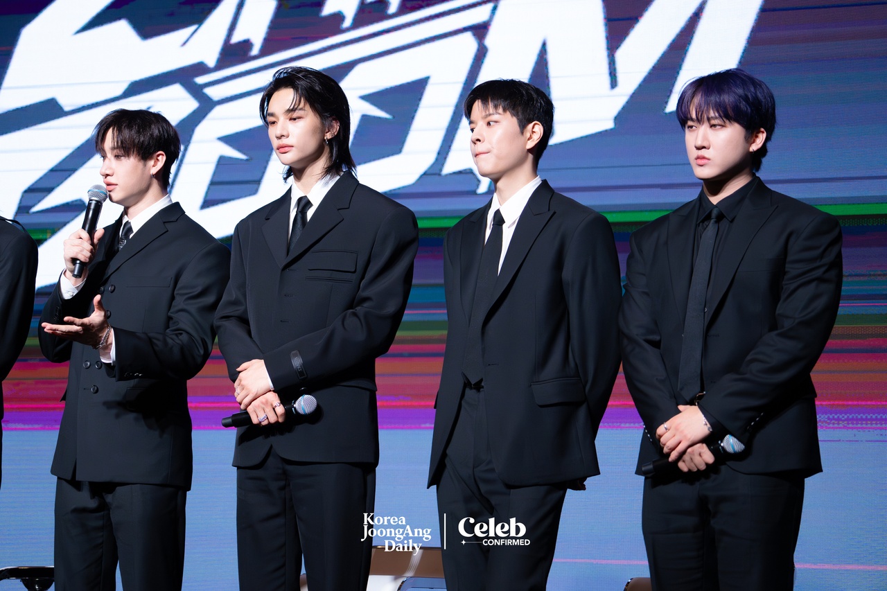 11:28 a.m. Q. and A. begins. “This is a highly anticipated moment for us,” says member Lee Know. “We had fun preparing for the album, and we are very confident, so we wanted to showcase it fast. We hope to hear that we rocked the stage with the performance.”