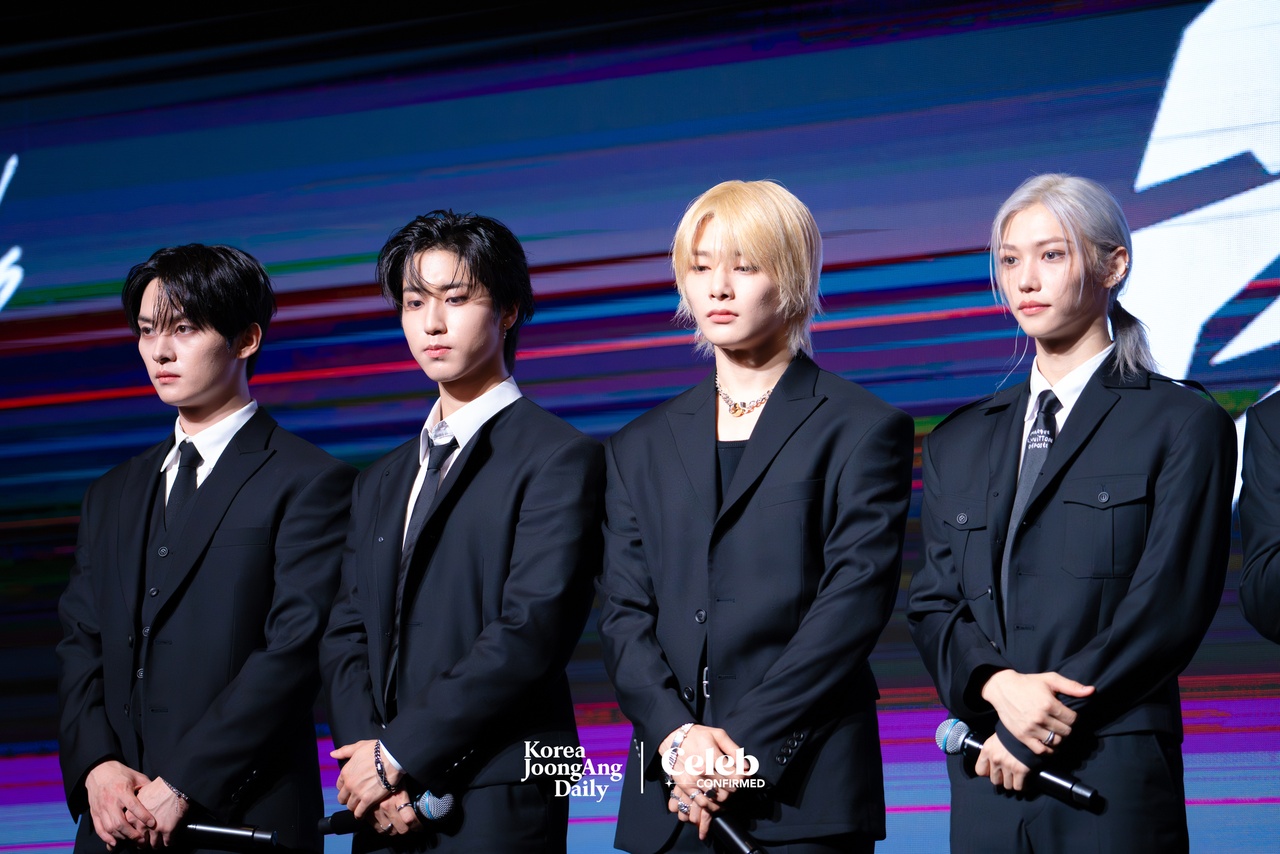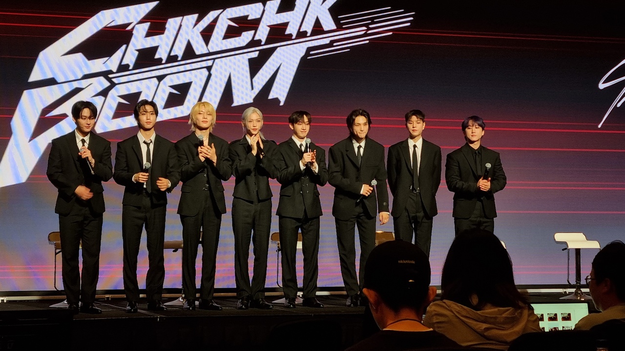 11:37 a.m. “Regarding music variety shows, I.N appeared on 'King of Mask Singer' [2015-] and I think he did a good job with it,” says Seungmin. “And, so, half of our group's members appeared on that show, and I think there are many more opportunities open to us. If shows want us, we are open. Lee Know also appeared on a show called “Leemujin Service” [2022-].”
