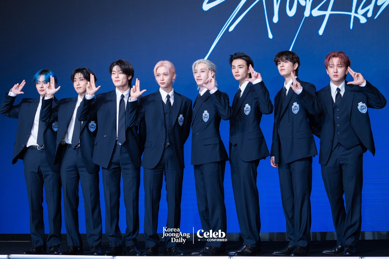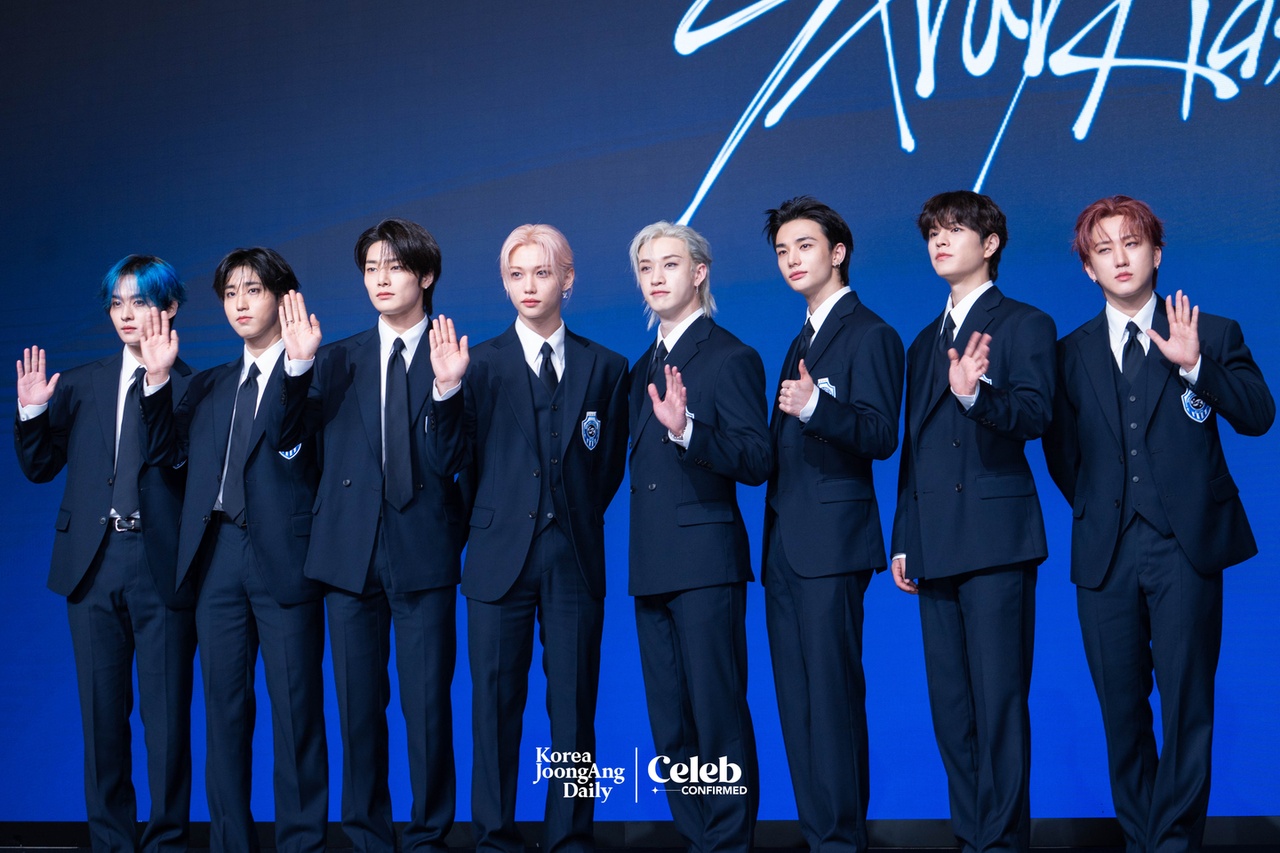 Here are some highlights from the media event, where Stray Kids posed for the cameras and answered questions from reporters.