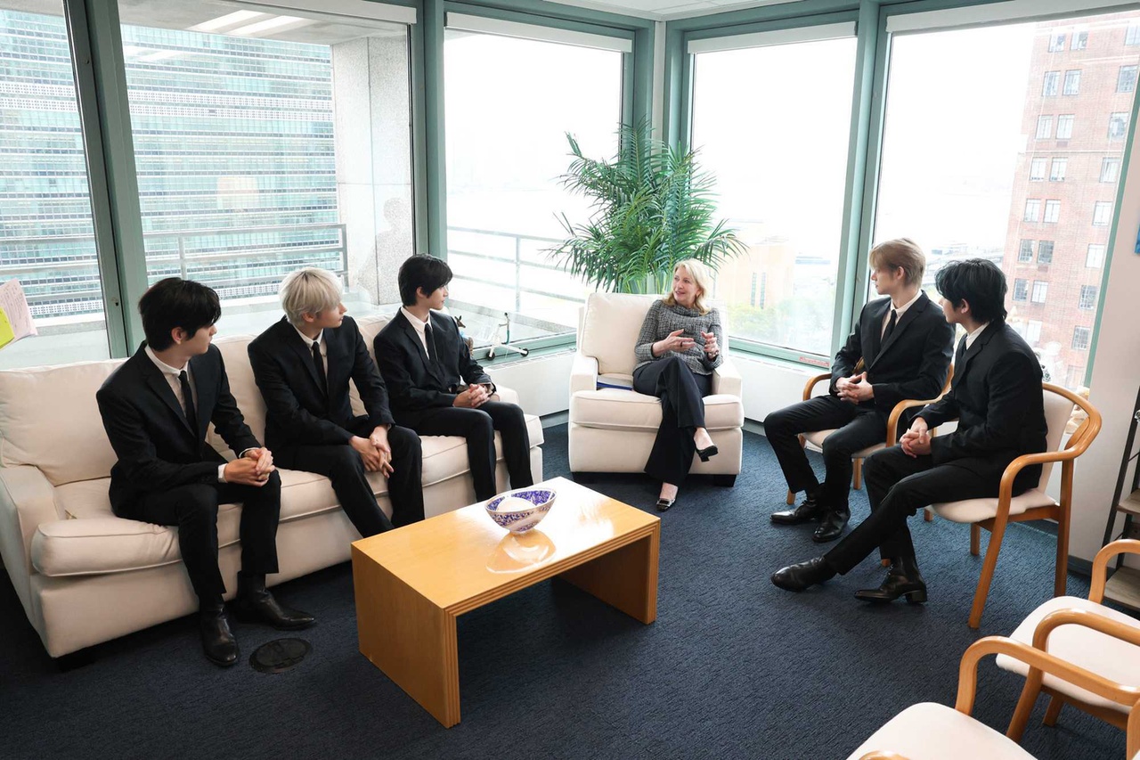 The event was attended by the five members — Yeonjun, Soobin, Beomgyu, Taehyun, and Hueningkai — who met with Unicef Executive Director Catherine Russell.