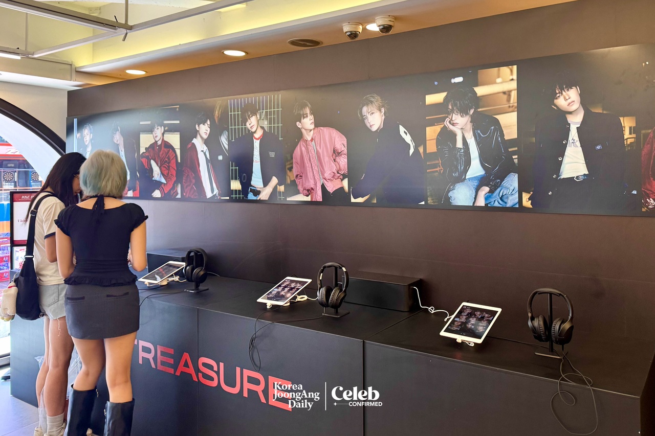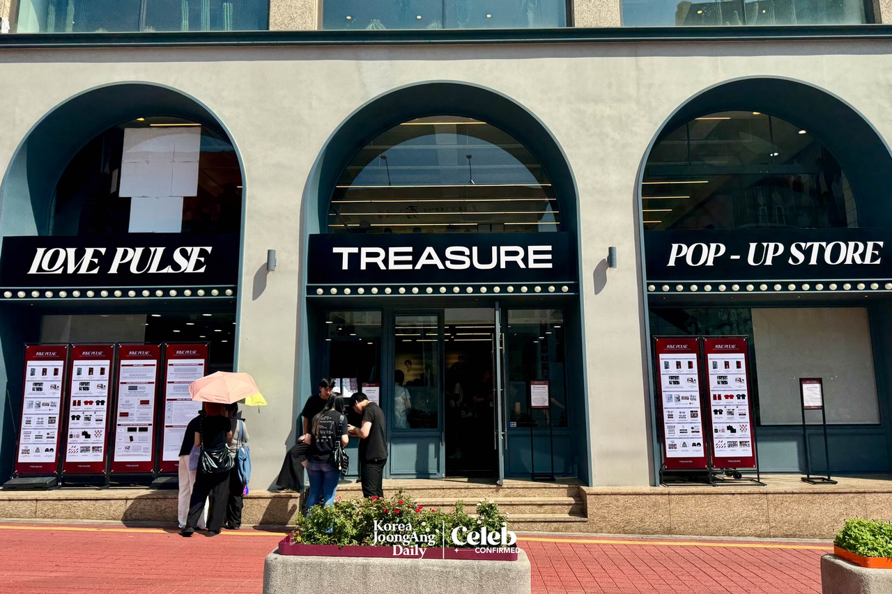 Boy band Treasure opened a pop-up store on Tuesday at Star Square in western Seoul to celebrate the release of its new album “Love Pulse.”