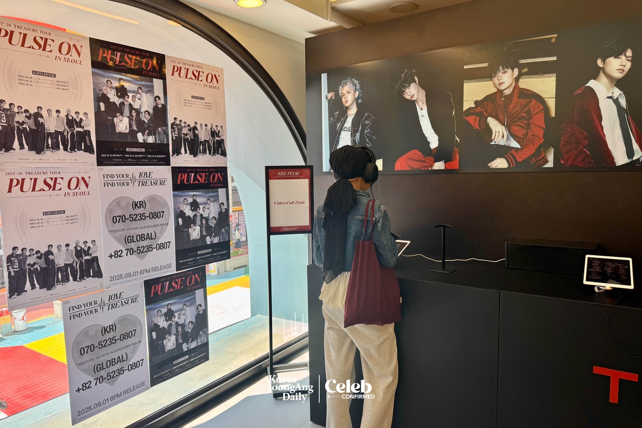 Fans who visit the store can check out signatures and doodles drawn by the members, who visited the store the day before. Treasure Makers, as the group’s fandom is called, can also experience “video calls” from their favorite members at the designated zone and take part in the “Find Your Love, Find Your Treasure” game, where after answering a series of questions they are matched with their ideal member.