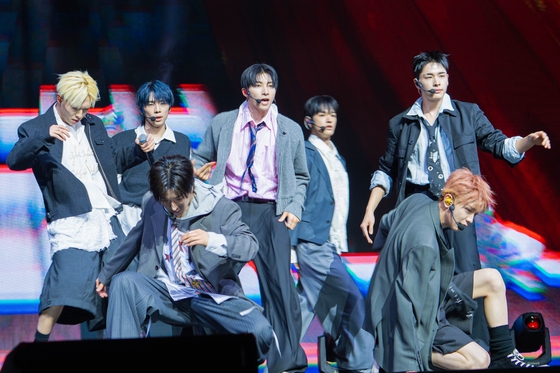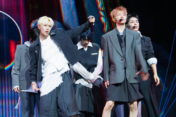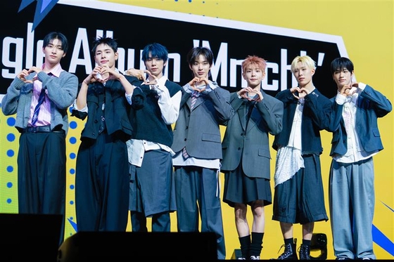 “'Mmchk’ represents the sound we make as we move,” said member Hyui, referring to the title of its latest single, during a press showcase held at Blue Square Woori WON Banking Hall in Yongsan District, central Seoul, on Monday.