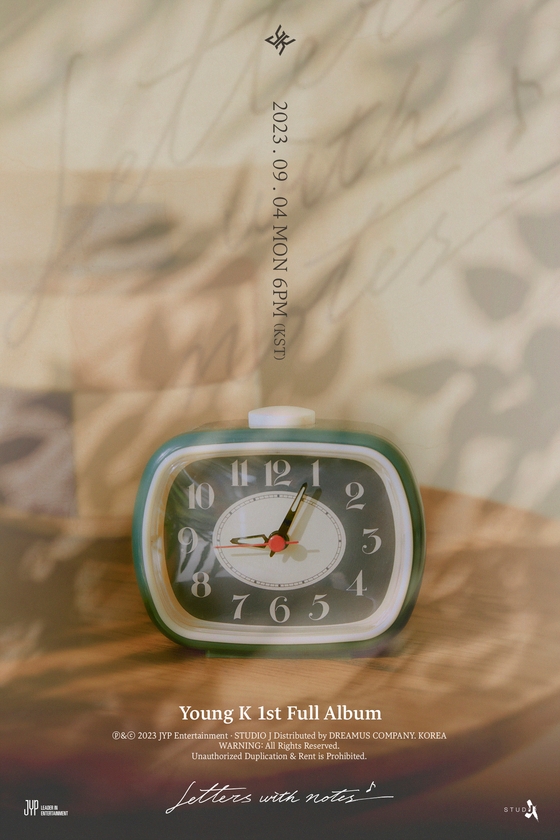 Singer-songwriter Young K from boy band DAY6 will drop his first solo full-length album “Letter with notes” on Sept. 4, his agency JYP Entertainment said Monday.